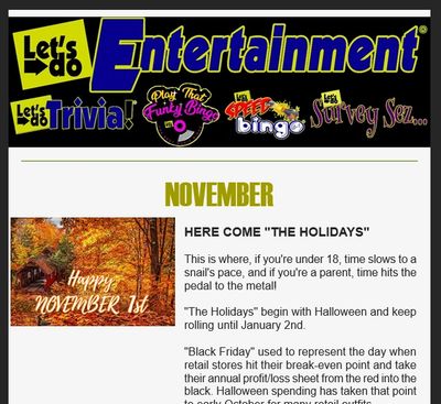 The On-Time Bonus applies to our Let's Do Trivia!, Survey Sez..., & Music Lovers Trivia gameshows.